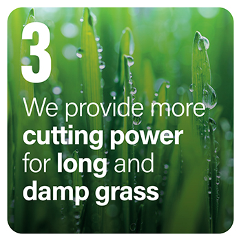 Inget mer krångel när du klipper långt eller fuktigt gräs – någonsin.