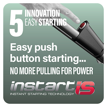 iS-serien InStart®-systemet för samman den perfekta kombinationen av bensindriven klipprestanda med lättheten och tillförlitligheten i litium/jon-batteri-tekniken, som är integrerad direkt i själva motorn. Vi levererar dig den ultimata startprestandan – inget mer dragande i snöret. Startar med en tryckning!